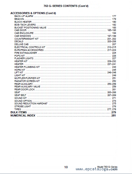 [10/2000]Electronic parts manual, presented for sale, contains complete technical information about original spare parts for skid steer loaders Bobcat 763 G-Series.