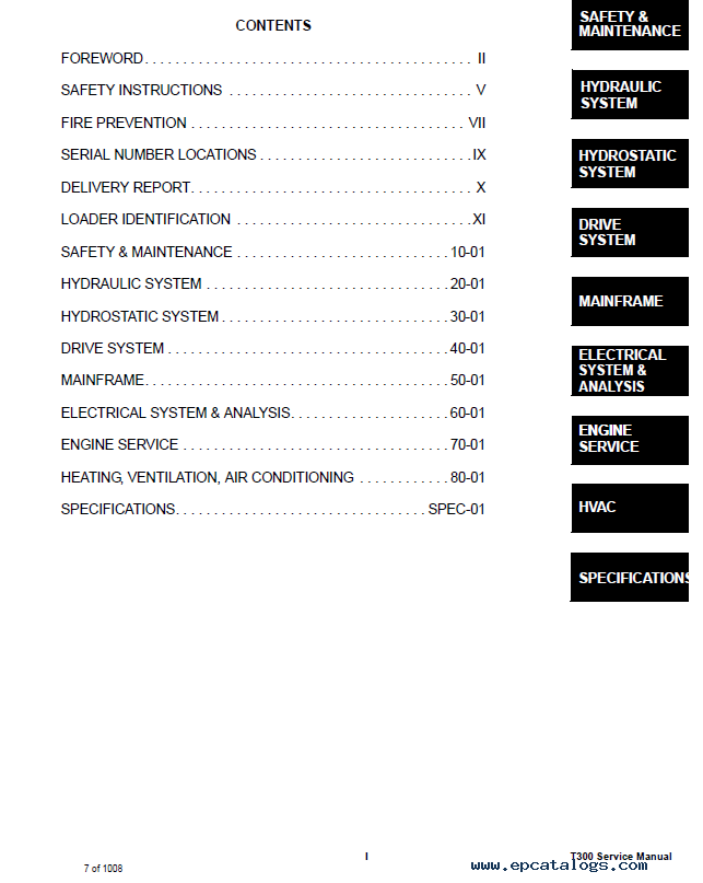 Note: Information for this Bobcat Compact Track Loader T300 is contained in several files, one for 2008, the second update for 2009, 2011 and 2013 years. Use them together for complete information.