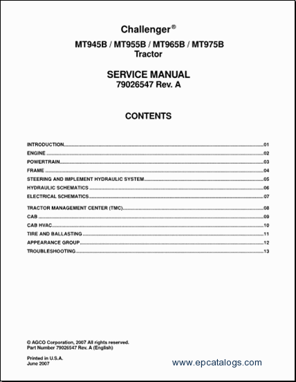 Challenger Workshop Service Manuals Tractors Rubber Tracked
