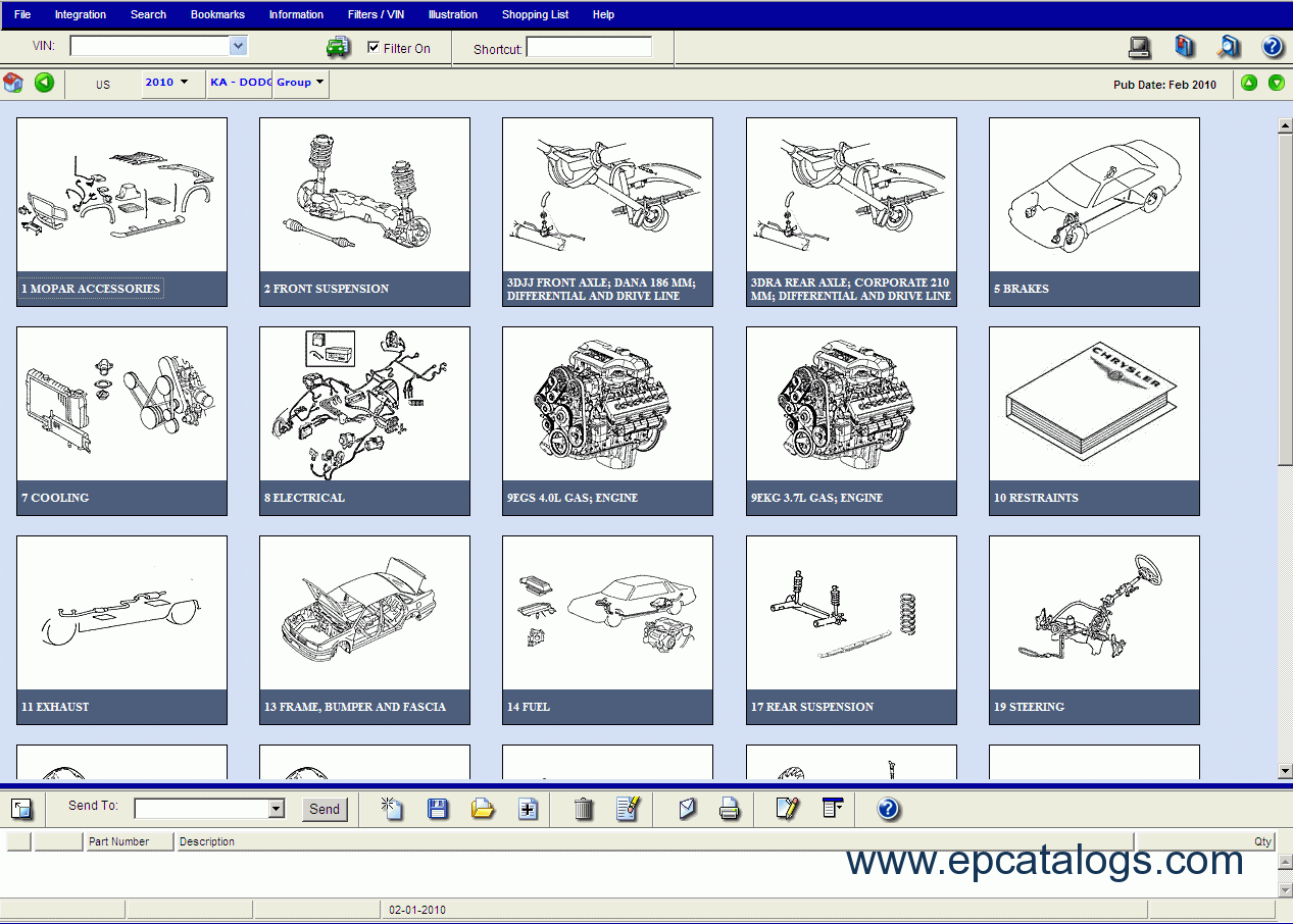 Electronic directory Chrysler PAIS4 2013 (USA + Europe) is very simple and easy to use because it allows customers to search parts by model number, serial number, by name, gives information on the application concrete spare parts on marks and models.