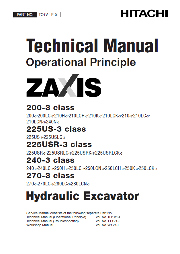 - Technical Manual (Operational Principle) Zaxis 200-3, 225US-3, 225USR-3, 240-3, 270-3 Class Hydraulic Excavator - 424 pages;