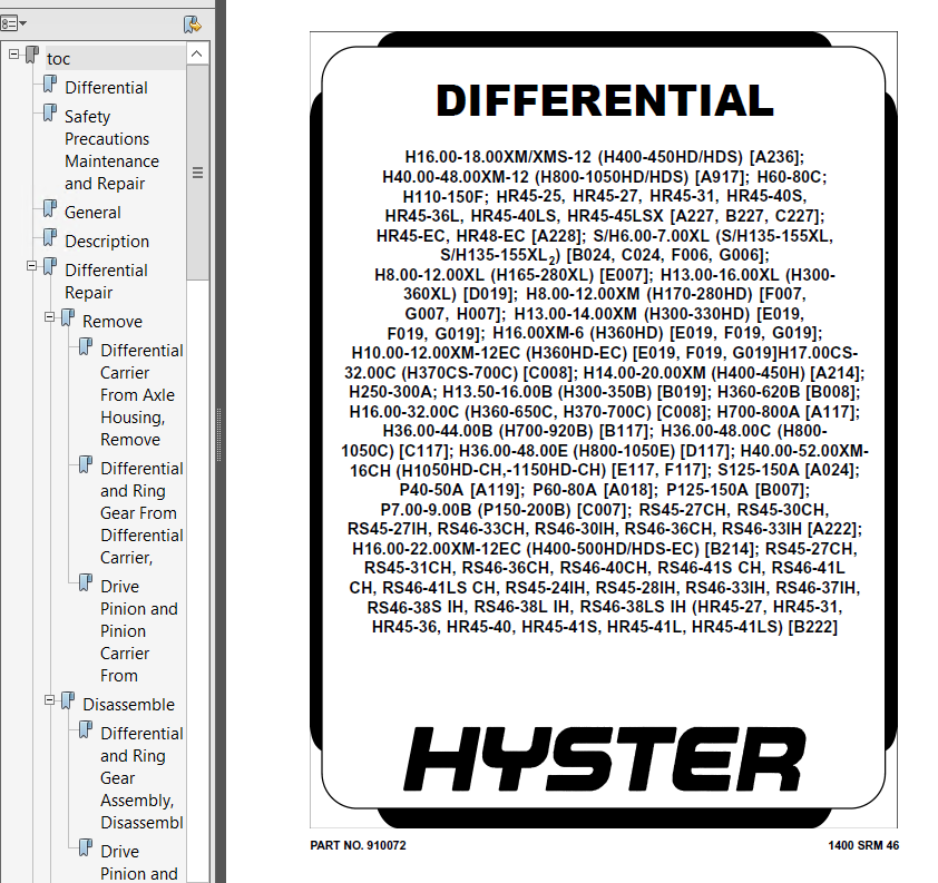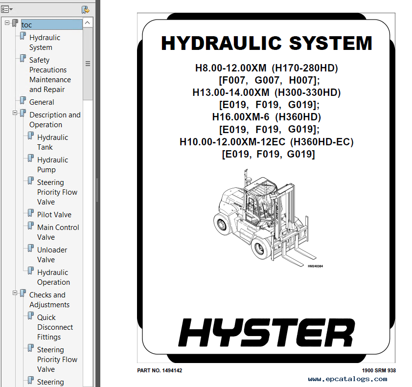Screenshots for Hyster Class 5 For G019 (H300HD, H330HD, H360HD, H360HD-12EC) Trucks PDF Manual: