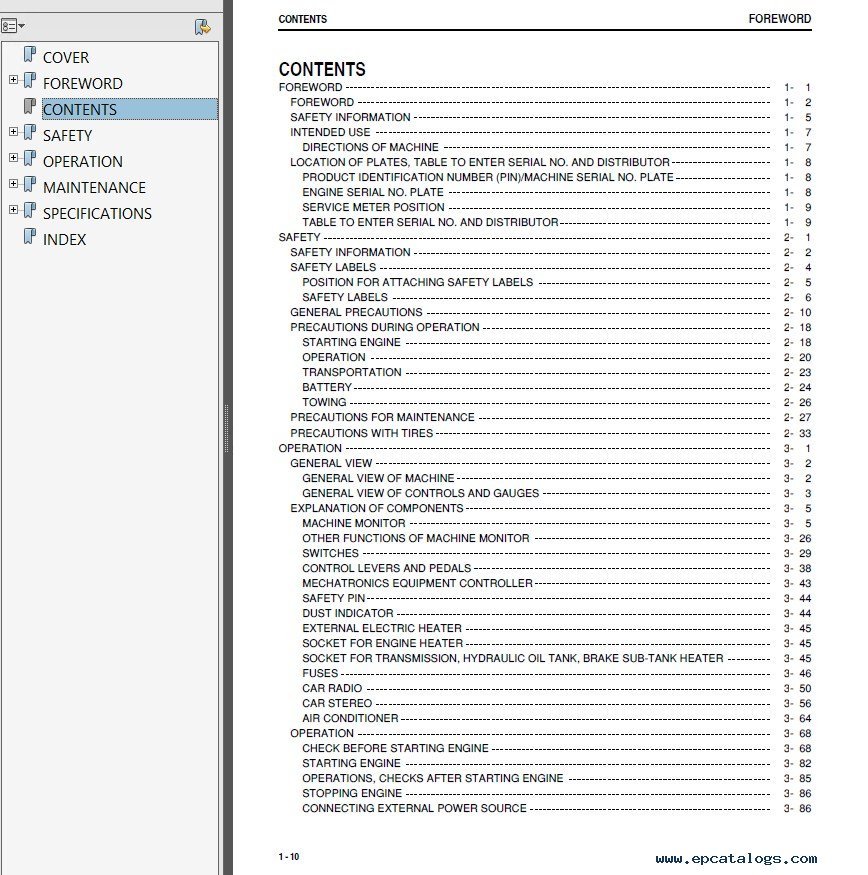 Contents of Operation & Maintenance Manual SEAM045802T: