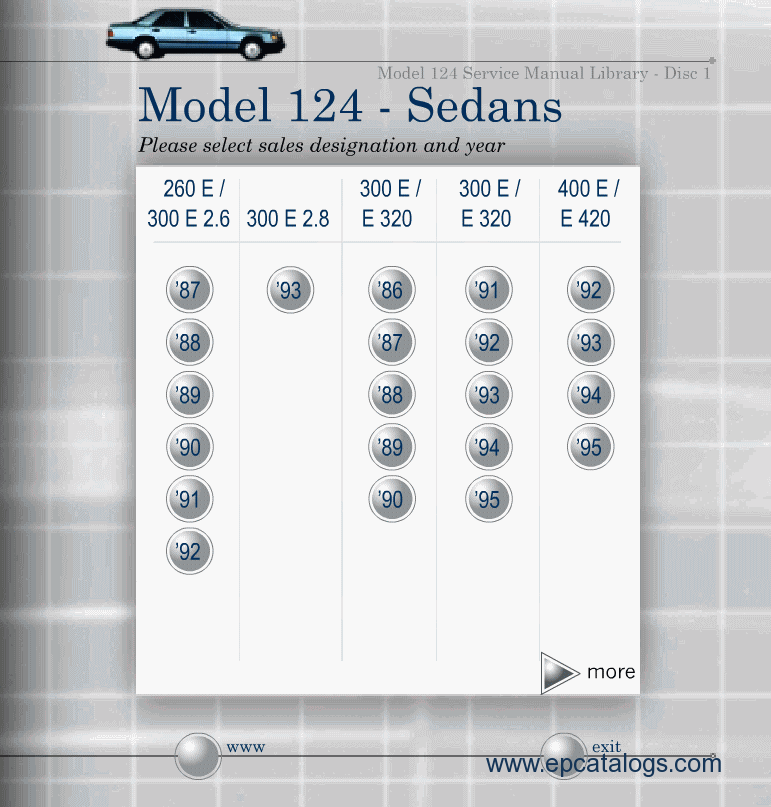 The program contains the detailed and full description of repair and diagnostics of all units of the automobile, including detailed electric schemes, the moments of inhalings, process of assembly and disassembly of the engine and other units and units, body sizes for an extract of a body, detailed repair transmission automatic and manual, repair of coupling, steering management, the conditioner, all electric components and blocks of the management, the necessary special tool, and as other information about Mercedes W124.