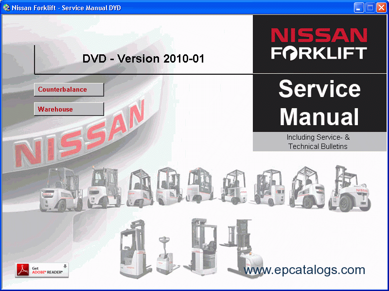 Nissan Forklift Service Manuals contains service and repaire manuals for Nissan warehouse equipment. It contains component descriptions, repair instructions, wirning digrams, etc.