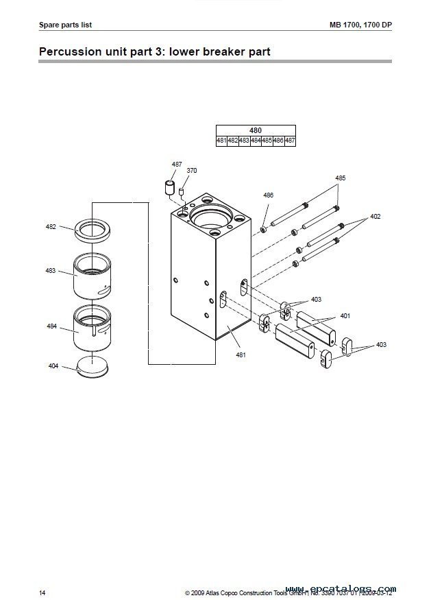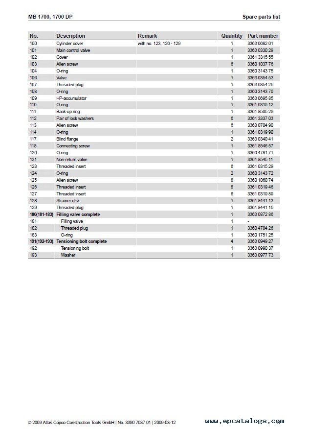 Atlas Copco MB1700 & MB1700DP Hydraulic Breaker Spare Parts List PDF