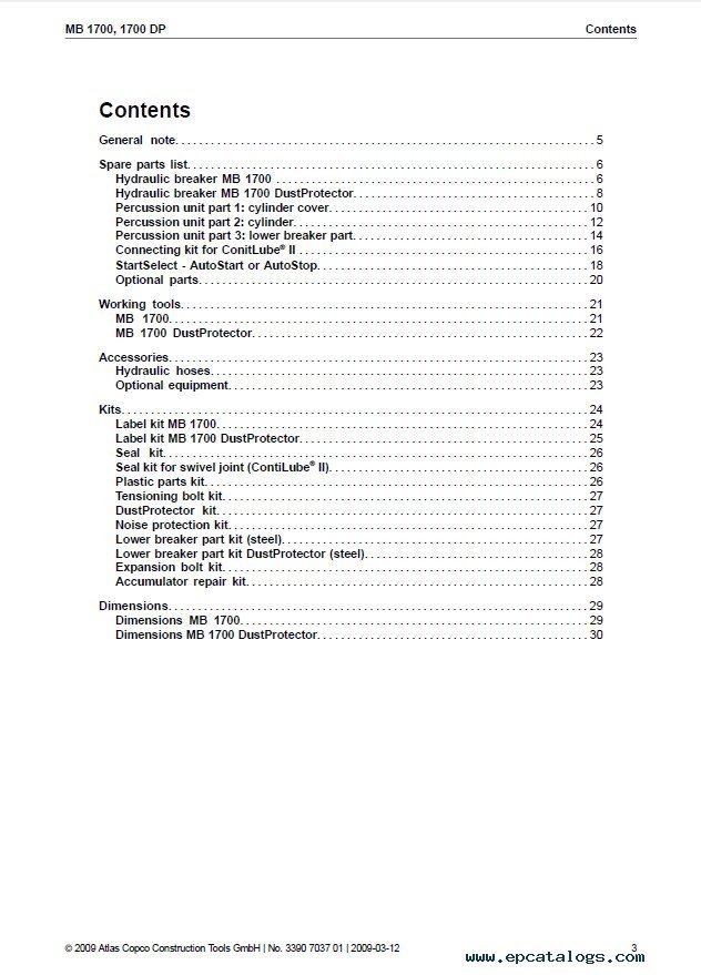 Screenshots for Atlas Copco MB1700 & MB1700DP Hydraulic Breaker Spare Parts List PDF: