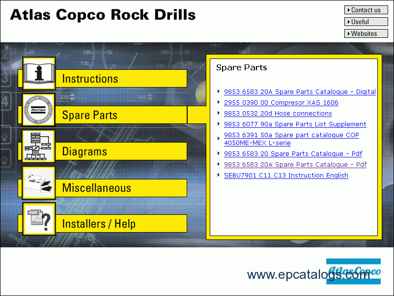 Atlas Copco Rock Drills Spare Parts is a spare parts catalog with full instructions. Except for mining equipment, this Atlas Copco develops and produces industrial tools, air compressors, mining and construction machinery. The version available here gives you access to all current machine details.