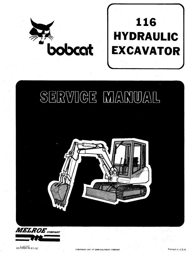 [05/1988]Service manual contains technical information, repair and service instructions, technical specifications, charts and schematics, intended for Bobcat Hydraulic Excavators 116.