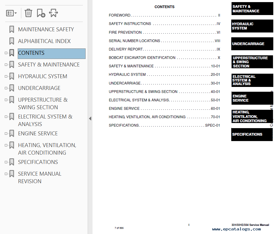Screenshots for Bobcat 331, 331E, 334 Compact Excavators Service Manual PDF: