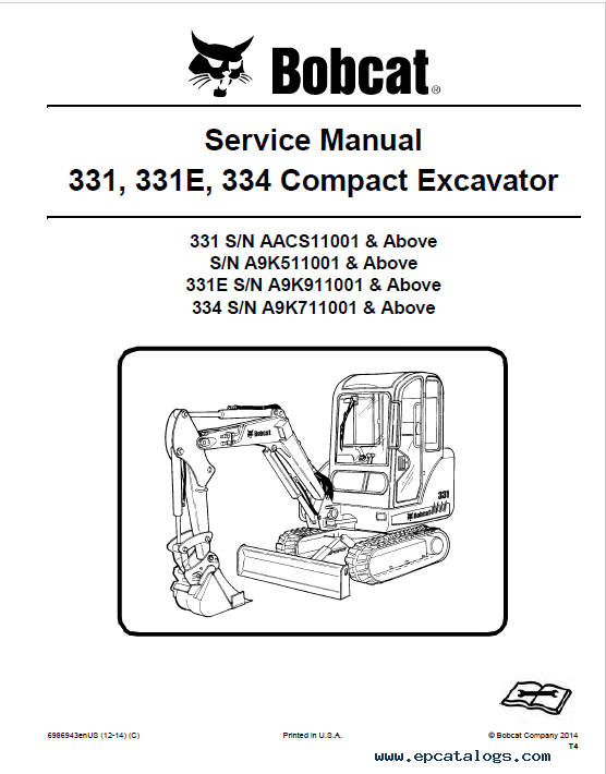 [2009-2014]Service manual contains detailed service repair information, special instructions for repair and maintenance, diagrams, troubleshoot information for Bobcat Compact Excavators 331, 331E, 334.
