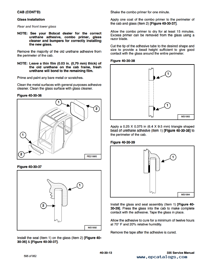 Note: The technical information for compact excavator 335 Bobcat is contained in 2 PDF files. Year of the release of manuals 2009 and 2010.