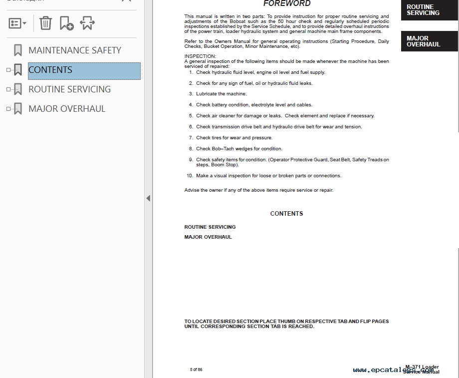 Screenshots for Bobcat 371 Gasoline & L.P. Gas Service Manual PDF:
