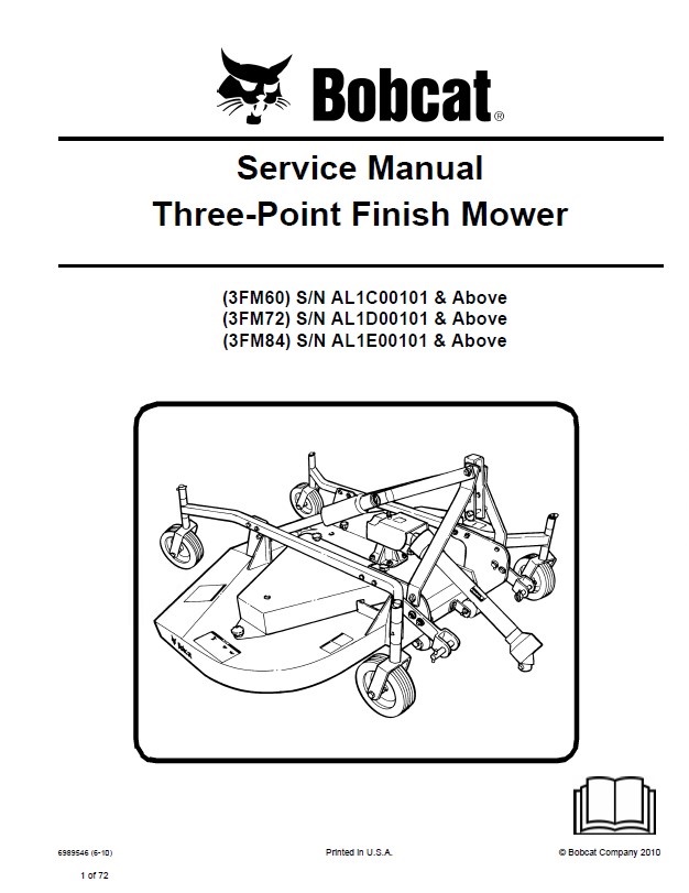 Note: this product covers 2 PDF files for Bobcat Three-Point Finish 3FM60, 3FM72, 3FM84 models of 2009 and 2010 years.