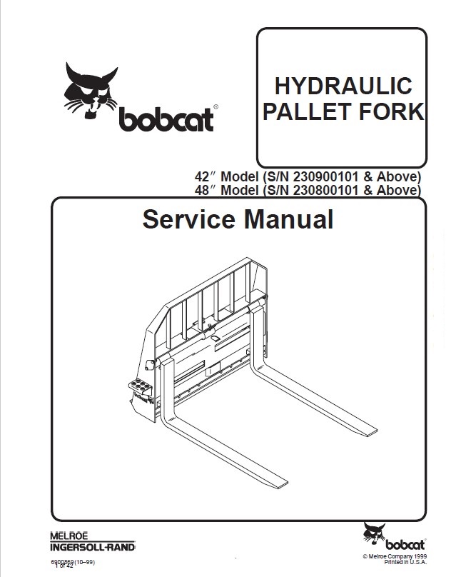 Note: this product covers 2 PDF files for Bobcat Hydraulic Pallet Forks 42", 48" Models of 1999 and 2011 years.