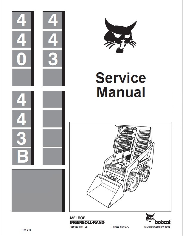 [11/1995]This service manual contains description of repair and troubleshoot procedures, installation instructions, special instructions, maintenance and other additional information for Bobcat Loaders 440, 443, 443B.