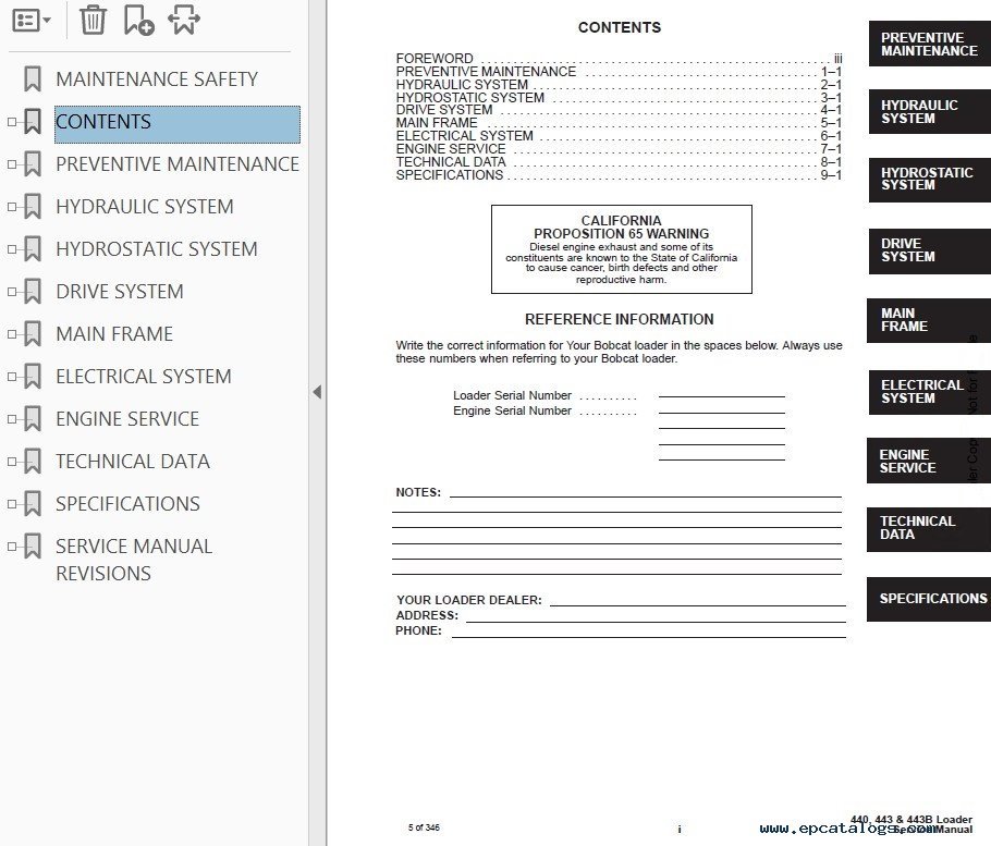 Screenshots for Bobcat 440, 443, 443B Loaders Service Manual PDF: