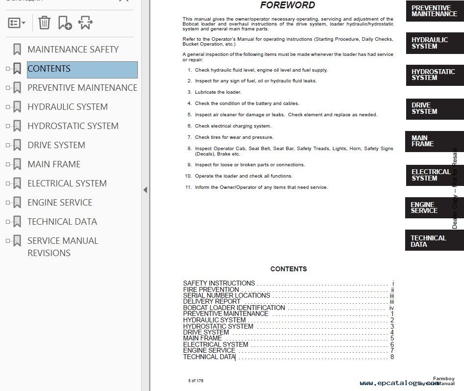 Service manual allows to quickly and easily repair and troubleshoot Bobcat loaders, solve any problems.