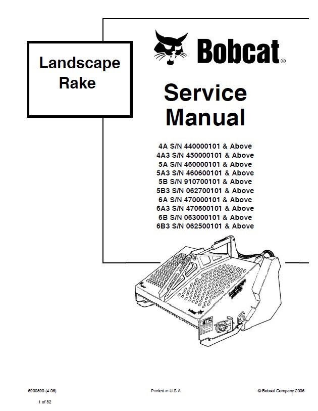 Bobcat 4A, 5A, 6A Landscape Rake Service Manual PDF
