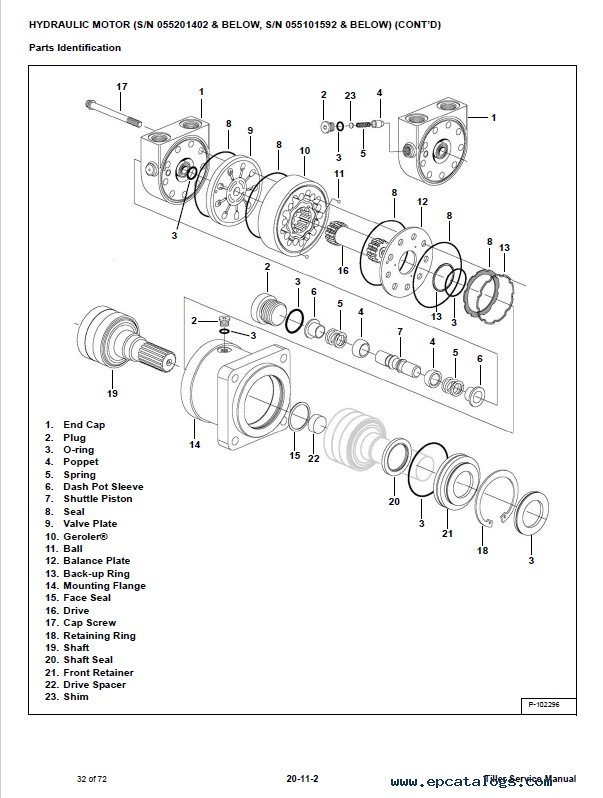 - HYDRAULIC MOTOR (S/N 055201402 & BELOW, S/N 055101592 & BELOW)