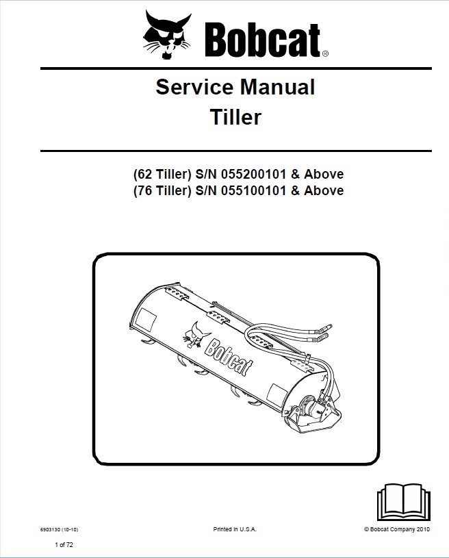[10/2010]This service manual contains service and repair information, installation instructions, special instructions, troubleshoot and other additional information for quality service Bobcat Tiller 62 Inch, 76 Inch.