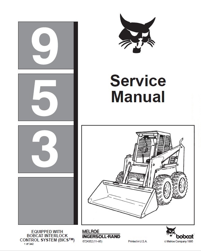 [11/1995]This service manual contains repair and maintenance information, installation instructions, special fitting instructions, pictures, circuit diagrams, and technical specifications for the Bobcat Loader 953. This manual provides clear information on how to service the product, helping you to identify existing and potential problems and perform maintenance and repairs.