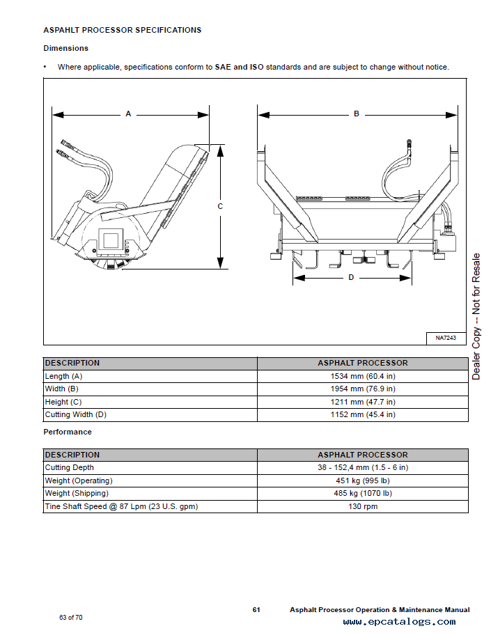 Read and understand all the instructions and precautions before operating the Bobcat Asphalt Processor S/N to avoid any breakdowns, damage, and injuries. Factory file comes in PDF format with 70 pages for reading. We recommend downloading the latest version of Adobe PDF Reader. You can easily print the desired image that will help your work. If you have any questions - write to us about them.