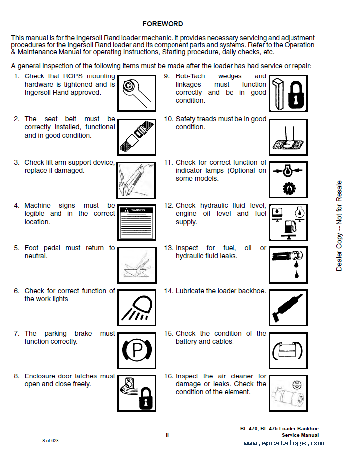 SAFETY INSTRUCTIONS FOR INGERSOLL RAND LOADER