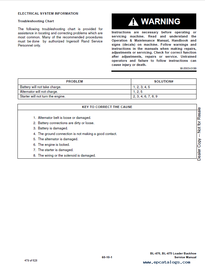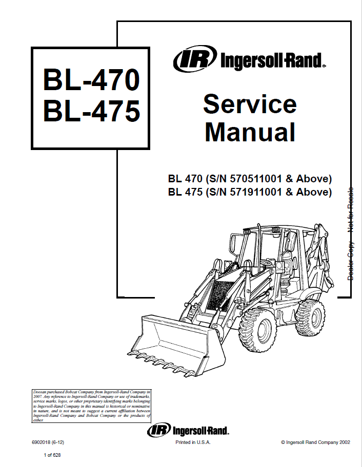 [2002]We want to present you the Service Manual for Bobcat BL-470, BL-475 Backhoe Loader models. In this factory file, you can find many efficient service procedures, safety rules, setting, technical maintenance, specifications, technical data, engine service, system section, and so on. In addition, you can see many illustrations, different diagrams, and schemes that will help professionals visually inspect the equipment in parts and understand all the text for Bobcat BL-470, BL-475 Backhoe Loader model.