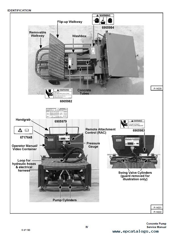 [2006, 2013]The service manual provides detailed repair and service information, maintenance service instructions, specifications, schematics, and circuits for Bobcat Concrete Pump Used With Remote Attachment Control. In addition, the tutorial includes troubleshooting, safety rules, many pictures, schematics, and diagrams with descriptions. Service instruction is a system supporting the operations and maintenance of Bobcat attachment, which enables to detect and eliminate problems and inaccuracies.
