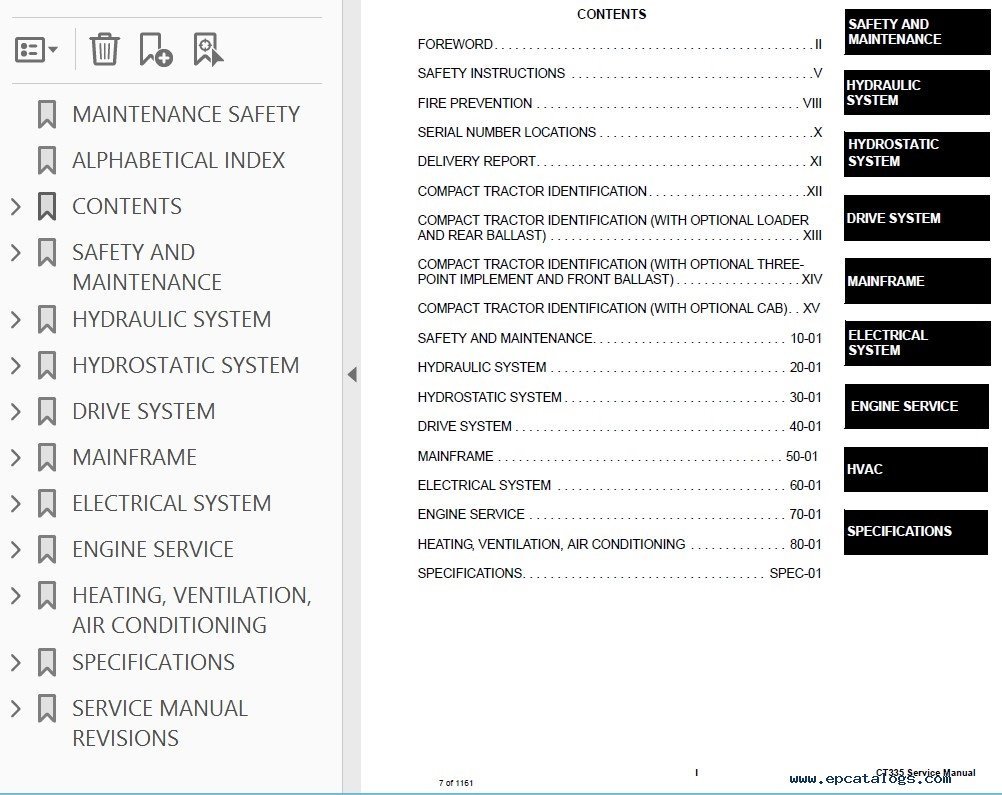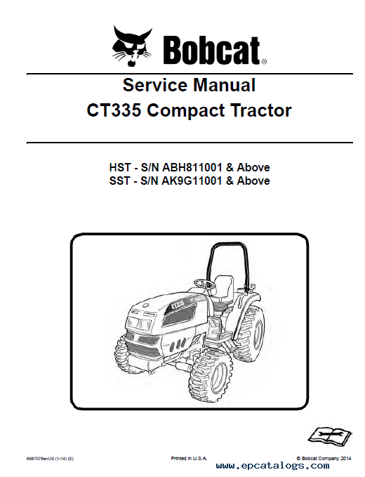 Note: information for Bobcat compact tractors CT335 model covers service manuals from the 2009 and 2014 years