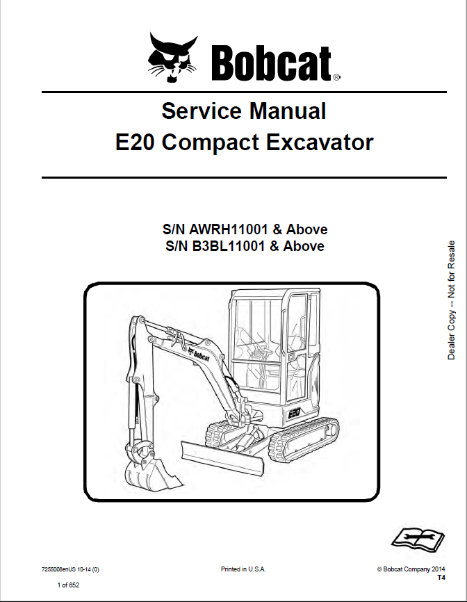 [2014]Attention! You have the opportunity to buy and read the full description of this service manual for the PDF Bobcat E20 Compact Excavator model. Factory file was written not only for qualified personnel who have been working in this field for many years but also for beginning specialists who want to buy this Bobcat technic.