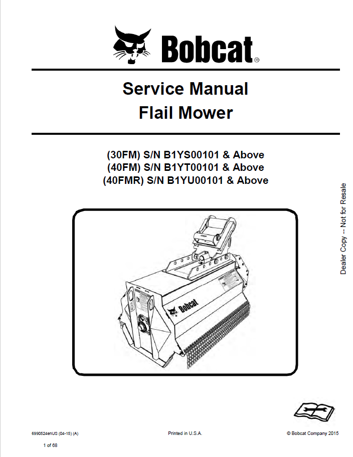 [2015]This Service Manual of dealer technical documentation, which was developed by the specialists of company Bobcat for comfortable use and maintenance of the Flail Mower 30FM, 40FM, 40FMR of the 2015 year.