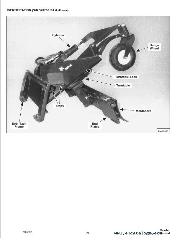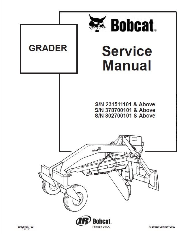 [06/2009]Service manual contains technical service information, repair and troubleshoot instructions, special instructions for repair, maintenance facilities, mechanical servicing, specifications, overhaul instructions, diagrams for Bobcat Grader.
