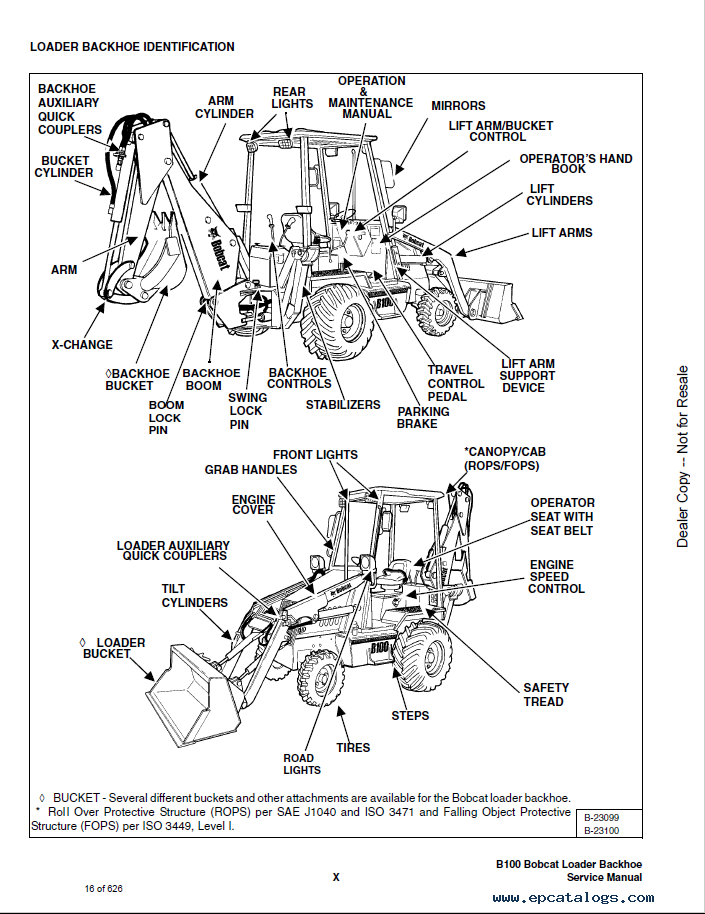 Thanks to this Bobcat product, you don’t need to fear your device breakdowns, because this instruction is written in plain language and contains step-by-step recommendations with pictures and even an unskilled master can understand and assist his Bobcat Loader Backhoe B100 series. To read and print the information you must install the Adobe PDF Reader program.
