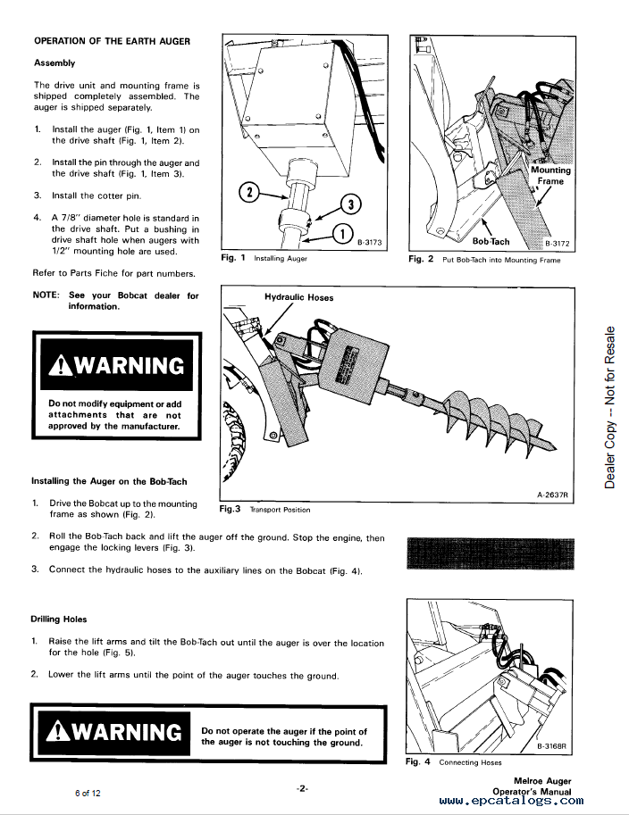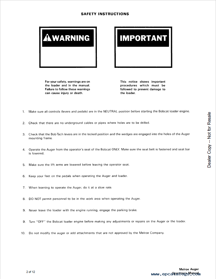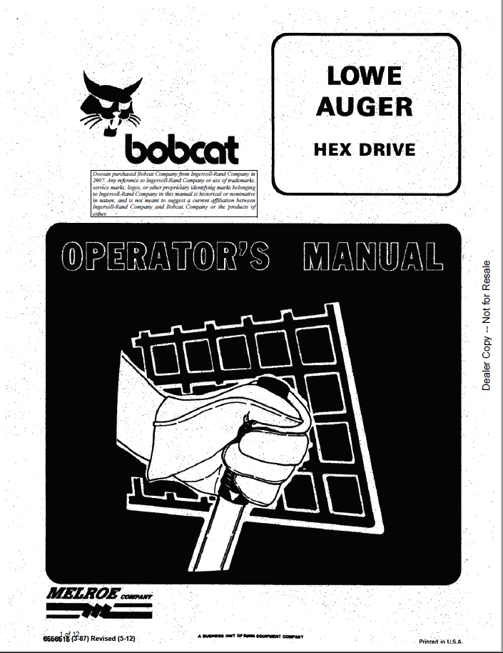 Bobcat Lowe Auger Hex Drive Operators Manual PDF