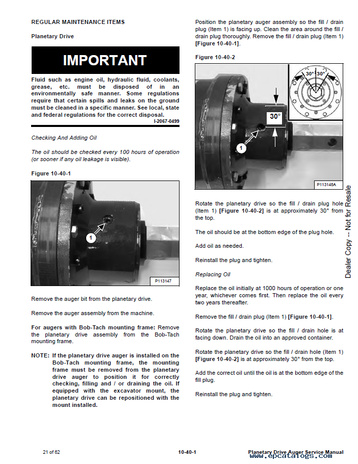 Screenshots for Bobcat Planetary Drive Auger PR3, PS5, PS7 Service Manual PDF:
