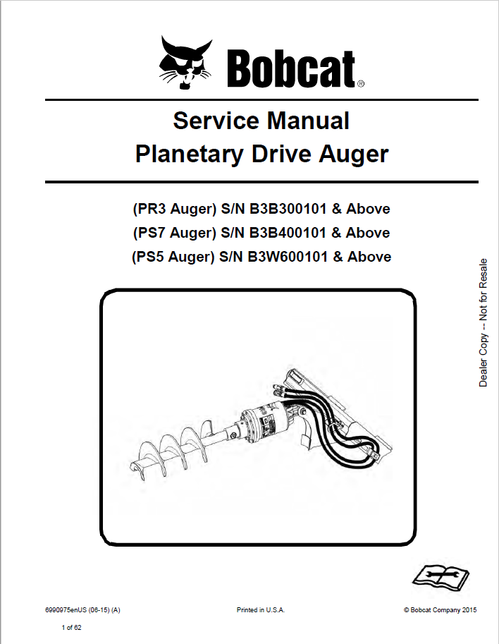 Bobcat Planetary Drive Auger PR3, PS5, PS7 Service Manual PDF