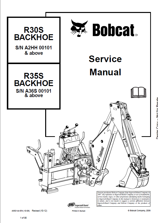 [2006]The Service Manual includes complete, clear material about correct use, technical maintenance, and troubleshooting for Bobcat R30S, R35S Backhoe models. This electronic guide consists of several sections about identification, safety rules, operation instructions, hydraulic system, lubrication, technical data, many screenshots, diagrams, and schemes for your Bobcat equipment.