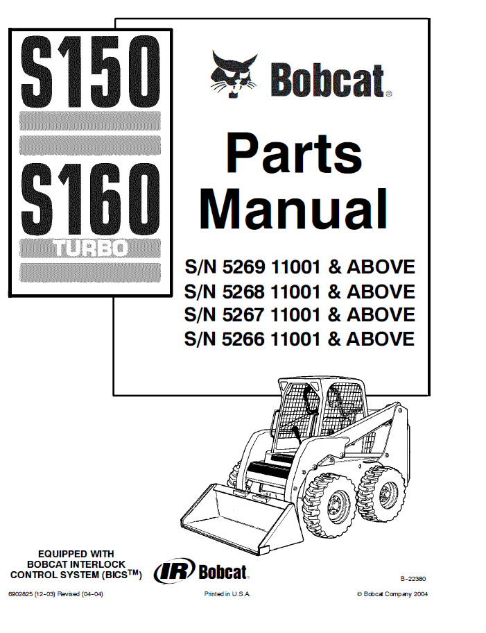 [2004]To your attention is presented the Parts manual with the necessary material for Bobcat S150, S160 Turbo Skid Steer Loader models. This electronic guide is a detailed source of important parts information for anyone with a technology that wants to improve the quality of their own maintenance their own equipment. The tutorial contains complete technical information on replacement parts and accessories, spare parts management, parts books, intended for Skid Steer Loader Bobcat S150, S160 Turbo.