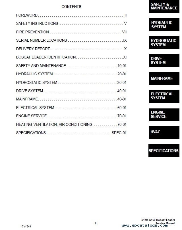 Note: Information for this Bobcat S150 and S160 Turbo Skid Steer Loader is contained in several files, of 2009, 2008, 2011, 2012, 2013, and 2014 years. Use them together for complete information.