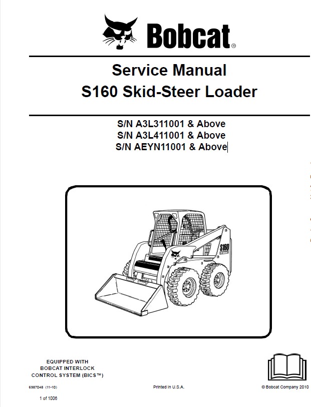 Note: this product covers several PDF files for Bobcat Skid Steer Loaders S160 model of 2009, 2010 and 2015 years.