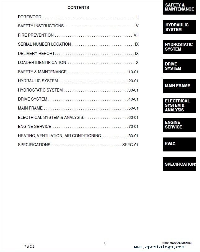 [2009, 2014]Presented in the site helpful and important information for Bobcat S300 Skid-Steer Loader model. The service manual contains repair and service information, installation instructions, troubleshoot, and other service information for Bobcat technic. Factory file includes a lot of illustrations, schemes, and diagrams, which help you to get a detailed description of all the systems of Bobcat loaders, using which you can determine the installation location spare parts, etc.