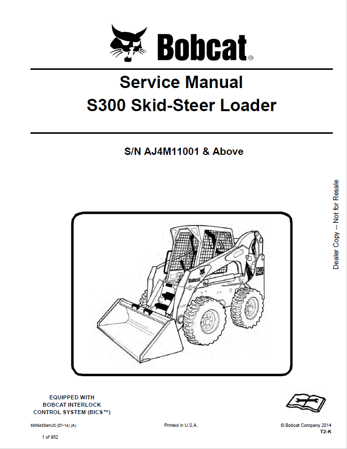 Note: this product covers 2 PDF files for Bobcat Skid Steer Loaders S300 models of 2009, 2011, and 2014 years.
