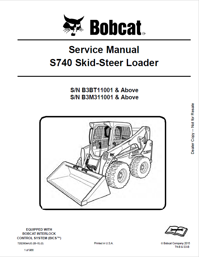 Bobcat S740 Skid-Steer Loader Service Manual PDF
