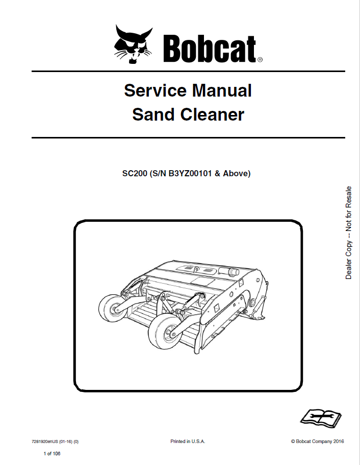 [2016]The Service Manual is essential for the proper use, maintenance, or repair procedures of this Bobcat Sand Cleaner SC200.