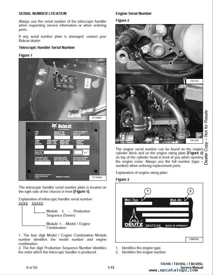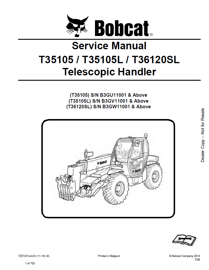 Note: Information for this Bobcat Telescopic Handler T35105, T35105L, T36120SL models is contained in two files of 2014.