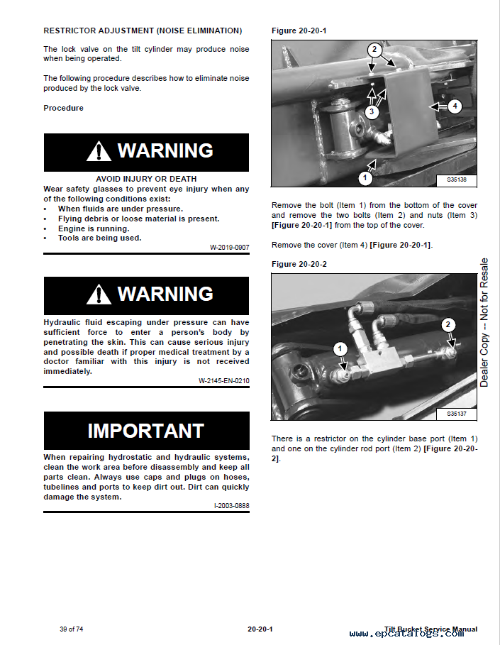 Screenshots for Bobcat Tilt Bucket CLS1/2/3/4/6 80-160 Service Manual PDF: