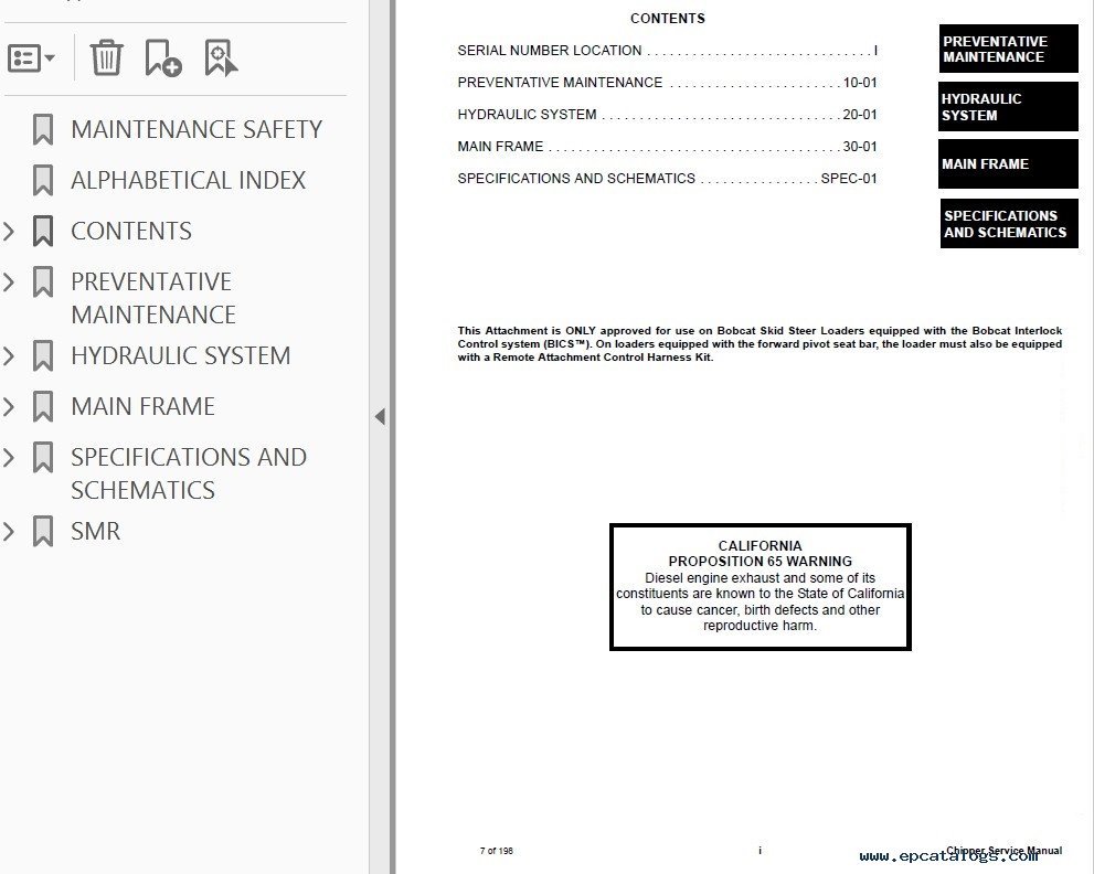 Screenshots for Bobcat WC-5A, WC-8A, WC-8B Chipper Service Manual PDF: