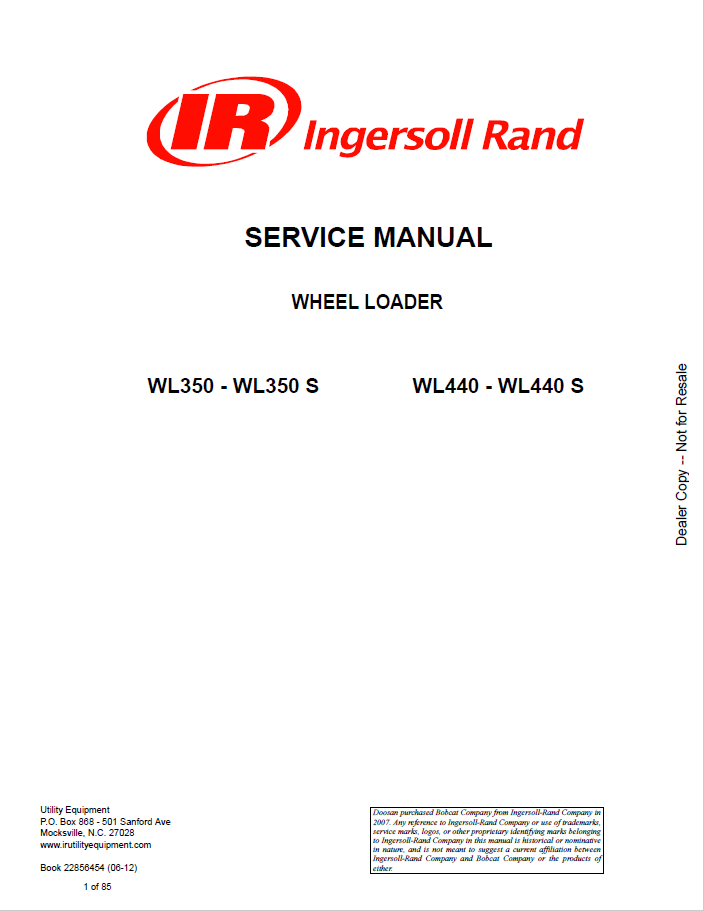 [2006]On our site, you have the opportunity to purchase the Service Manual for Bobcat Wheel Loader WL350-WL350S, WL440-WL440S. This wheel loader WL350-WL350S, WL440-WL440S models is a product of Bobcat quality engineering and manufacturing.
